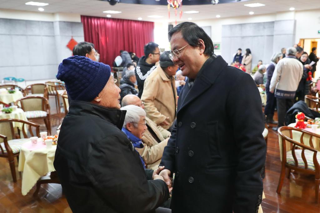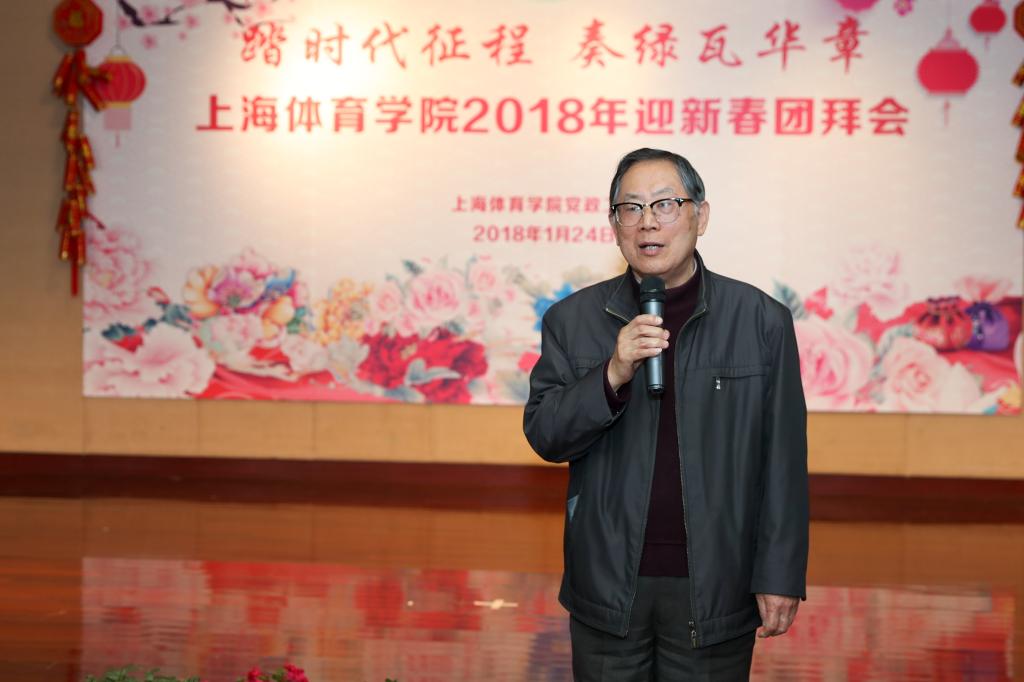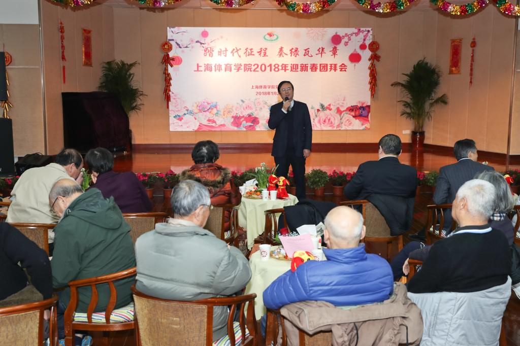 党委书记戴健致新年贺词并向关心和支持学校办学事业发展的老同志表示诚挚的感谢。他介绍了一年来学校发展所取得的丰硕成果。戴健指出,过去的一年,通过全体上体人的不懈努力,为上海体育学院这座历经了六十五年发展的新中国第一所高等体育院校注入了新的内涵,开创了新时期、新常态下学校发展的新空间、新愿景,取得了足以令所有上体人感到骄傲与自豪的辉煌成就与发展。展望2018年,戴健提出,学校将立足“十三五”规划实施、“双一流”建设和地方高水平大学建设“三大任务”,立足特色性应用研究型大学的发展定位,立足时代、面向未来,坚持立德树人根本任务,全面提升学校人才培养质量。坚持走特色发展道路、坚持走质量发展道路、坚持走精品发展道路,为学校2020年基本建成世界一流体育大学的目标再谱新篇。讲话的最后,戴健代表学校向全校师生员工致以最热烈的新春问候。