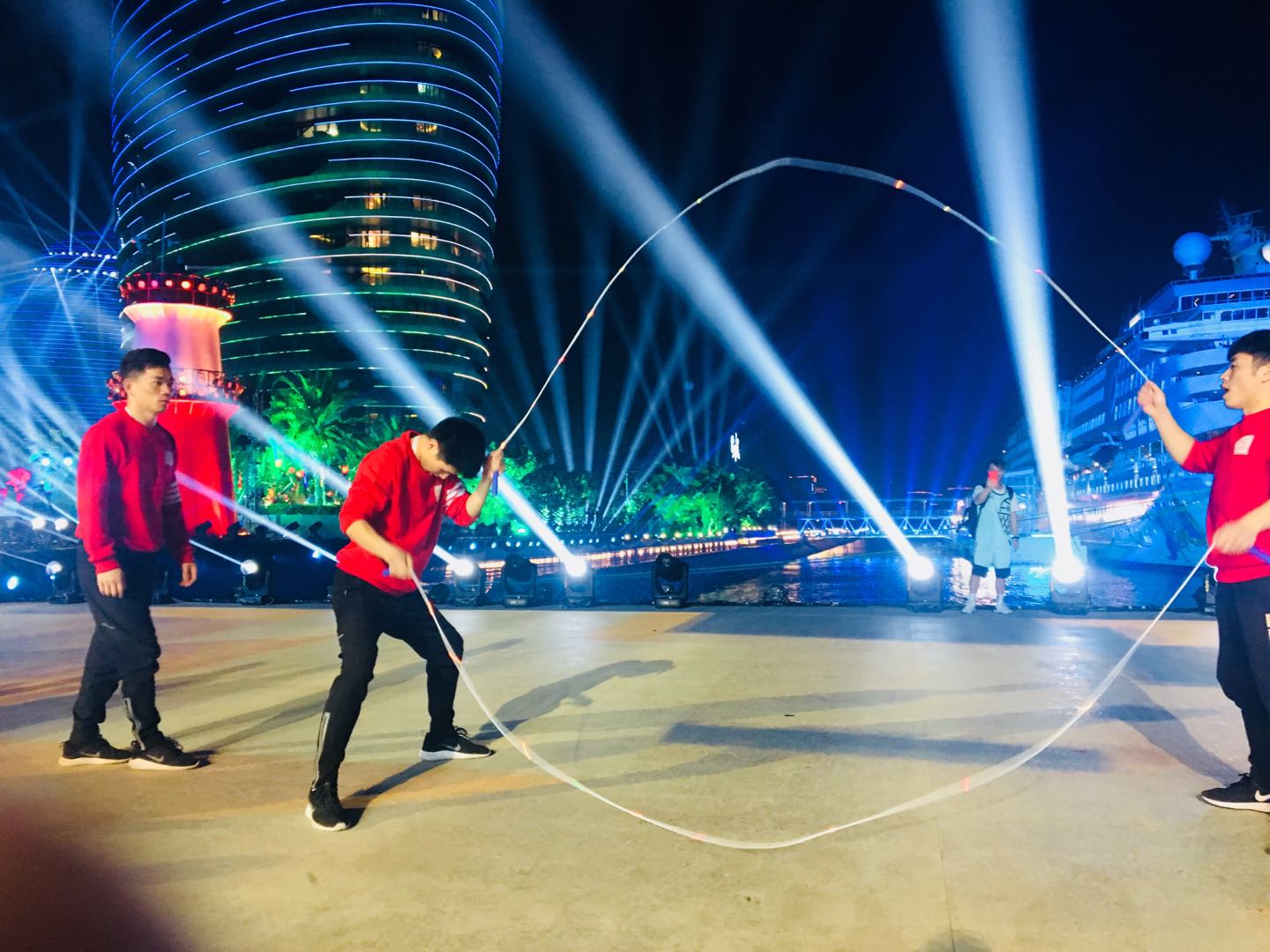 本网讯 2018年2月15日,全国人民期待的中央电视台春节联欢晚会隆重上演,我校花样跳绳队李时兴、韦冬玲和跃动跳绳队谢长磊(14届校友)、吴望强(15届校友)四人受中央电视台春晚节目组及三亚市委宣传部邀请,参加了2018年央视春晚三亚分会场表演。我校学生参演节目《乘风破浪》将花样跳绳、花式踢毽、花式篮球、艺术体操等观赏性较高的体育项目整合创编,与10多位体育明星同台亮相,向全国观众展现了体育的精神和魅力。