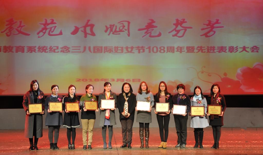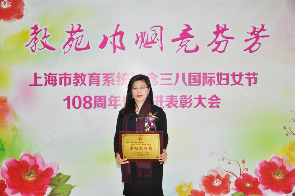 本网讯 3月6日下午,由中共教育工会上海市委员会,上海市教育系统妇女工作委员会举办的上海市教育系统纪念“三八”国际妇女劳动节108周年暨先进表彰大会隆重召开。会上,对于上海市教育系统荣获2017年度全国及市级”巾帼文明岗”、”巾帼建功标兵”等获奖单位及个人进行了表彰。我校经济管理学院体育经济学教学团队荣获“上海市教育系统巾帼文明岗”荣誉称号,并接受颁奖。上海市教卫党委书记虞丽娟、上海市教育工会主席成旦红出席颁奖仪式并讲话。