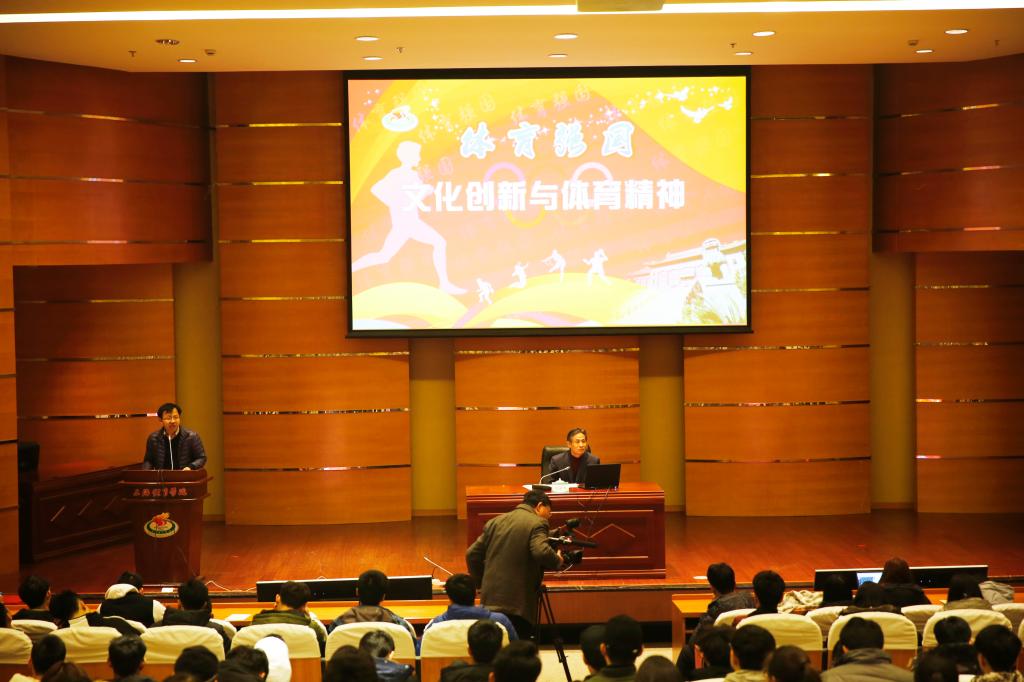 本网讯 3月21日下午,本学期我校“体育强国”课程第一课在图文信息楼报告厅开讲了。院党委副书记、副院长陈晓峰为体训、武术、休艺、经管等学院的400余名学生作了“体育‘人’”的主题报告。部分思政老师、辅导员也旁听了该报告。
