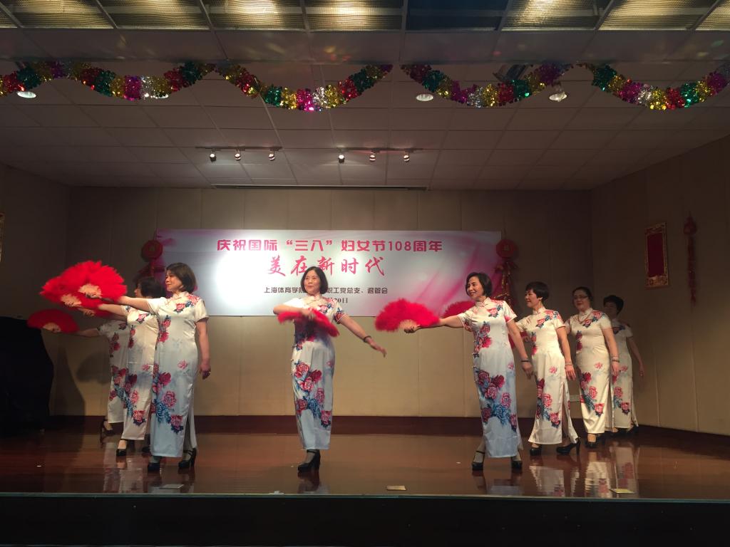 本网讯 三月的上海春意盎然。上海体育学院退管会“三八”妇女节庆祝活动于3月20日下午1:30在五楼工会多功能厅举行。当日上午正值十三届全国人大一次会议胜利闭幕,出席联欢会的女教工们怀着十分激动的心情,面带着幸福的微笑,冒着雨,近一百三十多位同志赶到学校,老同志们以饱满的精神欢庆“两会”的召开,欢度“三八”妇女节。年龄最长的郑琼芳老师今年已95岁,但她仍神采奕奕,在女儿的陪同下参加联欢会。家住市区杨美萍老师,住在浦东的杨玉曼、丁彩焍等老师都提前一两个小时从家里出发,赶来学校参加联欢活动。