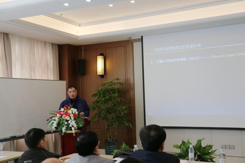 “爱课程”网的居峰老师从在线课程的起源、我国在线课程的发展、在线开放课程建设的质量标准、在线开放课程应用等方面详细介绍了在线课程发展的情况。他指出,教学应借助高科技手段,将在线课程的建设与课堂教学相融合,实现优质教育教学资源合理配置,提高教师教学水平,从而促进本科教学水平的提高。此后,课程视频制作专家李福利老师从在线课程的拍摄与制作方面做了详细的介绍。