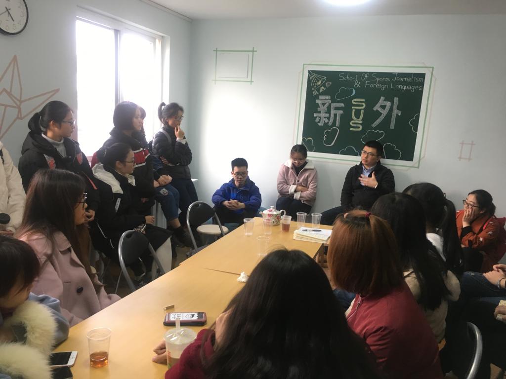 针对学生提出的专业学习有待进一步紧贴业界的意见,三月以来,学院先后邀请解放日报上观新闻互联网观察栏目主编、体育栏目主编、梨视频内容运营负责人和上海科学研究所科技发展研究中心主任等为学生就新媒体转型、全媒体体育赛事报道、互联网视频生产、全球新科技革命与人工智能趋势等主题进行讲座互动。针对加强师生互动、培育良好学术氛围的意见,总支以“立德树人先锋岗”践行活动为制度化载体,要求党员教师带头,主动走近学生,与学生交友交心,创建“走进宿舍,与学生相约下午茶”等有亲和力和感染力的第二课堂育人项目。3月22日下午,教工第三支部戴焱淼副教授走进学生宿舍7号楼616读书室,为学生带去了“私人感受与公众观看”的摄影分享。4月2日,教工第四支部陈国强副教授与来自学界和业界的同仁为学生组织了“体育赛事调研实践工作坊”。