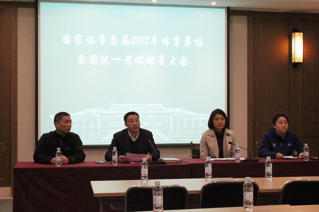 今年的体育单招统考改变了以往传统的校考模式,实行全国统考以及区域统考的方式。学校领导对此给予了高度重视,专门成立了体育单招统考工作小组。多次召集有关部门、二级学院进行专题研究,并在考前对校内考务人员及外聘考评员召开动员大会,明确要求各组分工,全力做好考试相关工作。