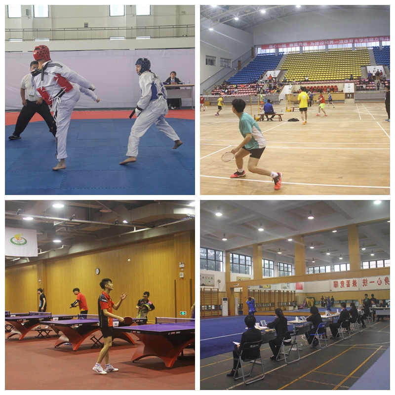 本网讯 4月14-15日,由我校承担的2018年体育单招华东片区乒乓球、羽毛球、武术套路项目以及全国跆拳道项目的统考工作顺利完成,约有1600余名考生在我校参加考试。