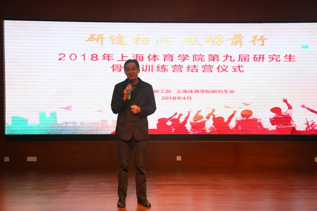 本网讯 4月25日,“研途初心,砥砺前行”——上海体育学院第九届研究生骨干训练营结营仪式在学生活动中心三楼多功能厅落下帷幕。上海体育学院党委副书记、副院长陈晓峰,学工部部长熊小健,研工部部长殷勤,体育教育训练学院党总支书记赵晓晗,体育新闻传播与外语学院党总支书记张盛,体育休闲与艺术学院党总支书记刘明生,运动科学学院党总支书记焦振伦出席仪式,参加结营仪式的还有各二级学院研究生辅导员。