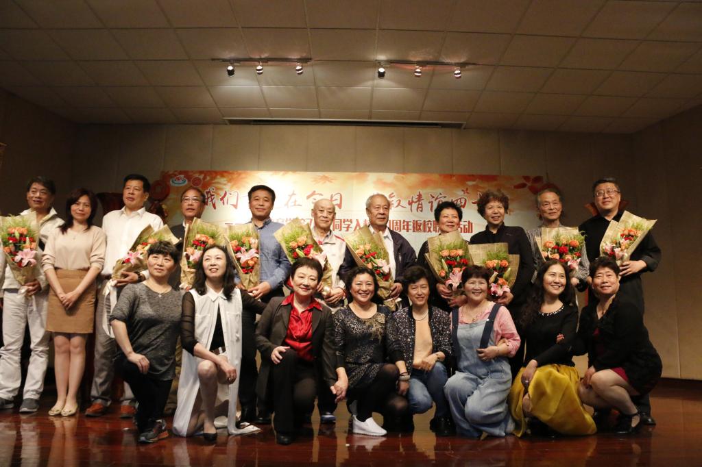 除了从各地赶来的学生,曾为78级学生任教的数十位教师代表也来到了活动现场。校友代表们上台向老师们献上了鲜花,感谢师恩。汤家玲老师作为教师代表上台发言,结合自身工作与生活的感悟,在向大家送出祝福的同时,语重心长地道出了对校友们今后发展的美好祝愿。