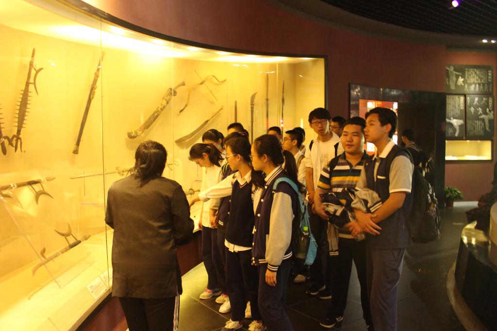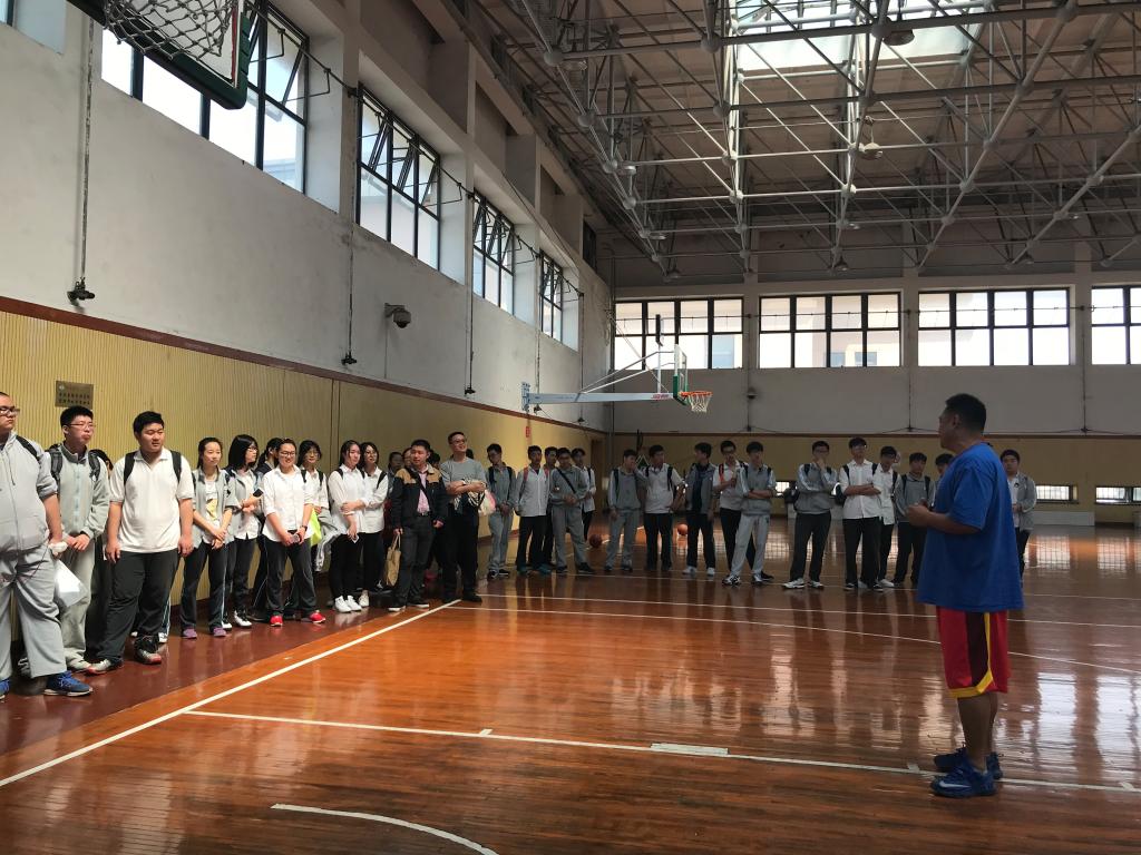 许丁晨、钱晓婉与体教专业本科生党员代表陪同五十二中师生参观了中国武术博物馆、室内田径馆等场馆,观摩了篮球、排球、网球、体操等专项教学课。在篮球馆,上海市“青年五四奖章个人”获得者孙伟老师向参加观摩的学生简要讲述了赴老挝担任国际志愿者的工作历程,并深情勉励在场同学要将自己的个人梦想与中国梦相结合,为祖国的富强贡献自己的力量。