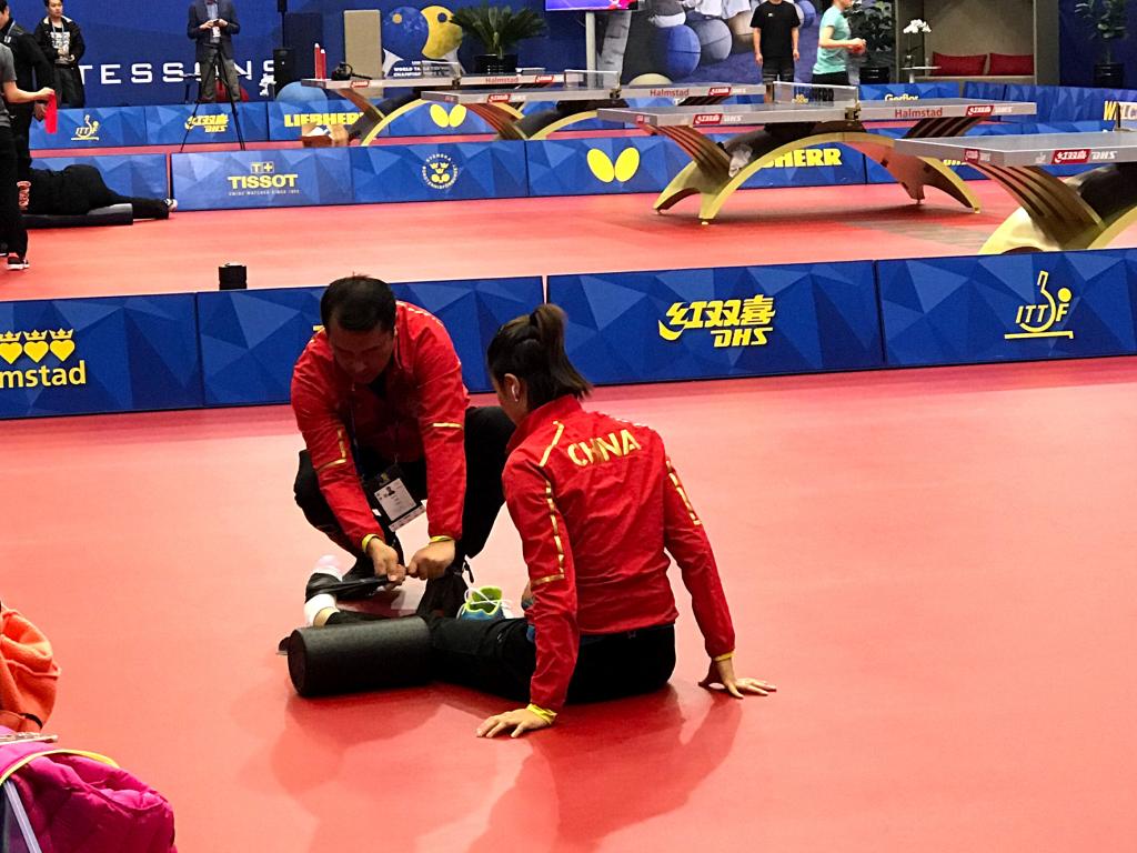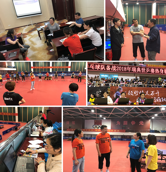 在中国女乒备战本次世乒赛的封闭训练期间,中乒院副院长任杰带领中乒院教师和学生组成科研团队全程跟随队伍进行科研服务,由于封闭训练时间短,任务重,大家工作到凌晨2、3点已是常事,但是并没有人偷懒抱怨,而是齐心协力、互相鼓励,尽全力满足教练员和队员提出的要求,帮助队伍做好充分的赛前准备,还有中乒院长期驻队的老师也在尽心尽力为全队服务,大家都在认真完成自己的使命,在比赛期间,大家也在时刻关注着比赛,他们的工作也得到了教练员和运动员的肯定。