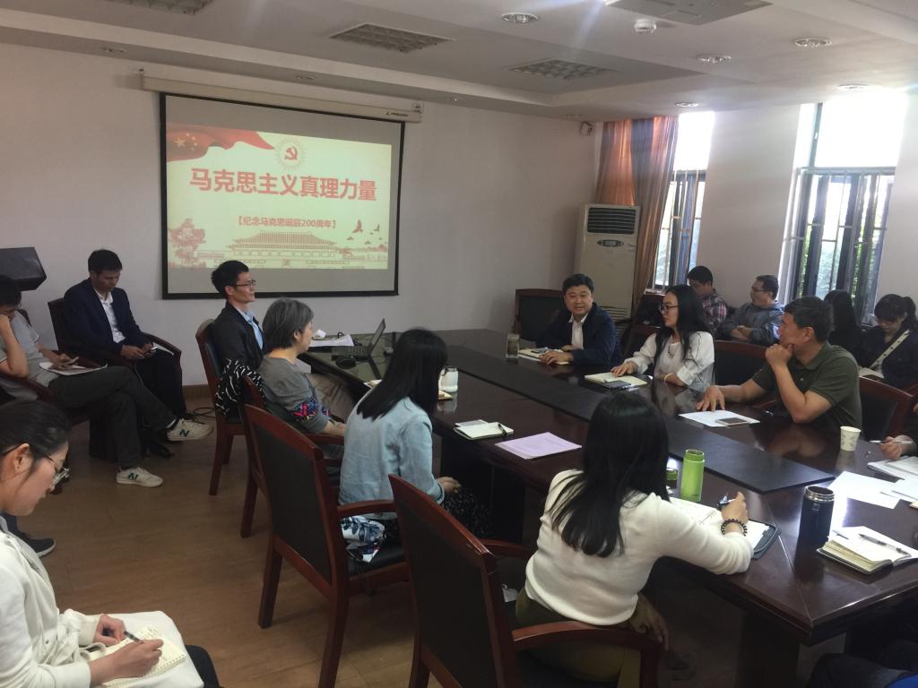 本网讯 5月9日下午,经济管理学院党总支举办专题党课,深入学习习近平总书记在纪念马克思诞辰200周年大会上的重要讲话,全体教工党员和学生党员代表参加了学习。