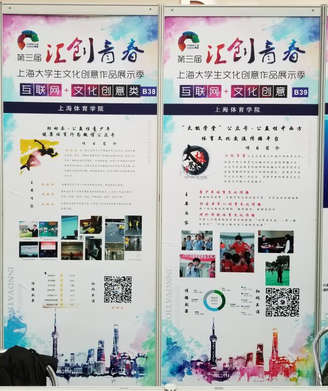 本网讯 5月18日,在市教委工作党委、市教委举办的第三届“汇创青春”——上海大学生文化创意作品展示活动中,《太极学堂》脱颖而出,荣获一等奖。本次活动中,互联网+文化创意类共有两百多个项目通过最初的海选,对最后的二十五个一等奖发起冲击。而“太极学堂微信公众号”在经过层层角逐后,最终荣获本次活动一等奖。