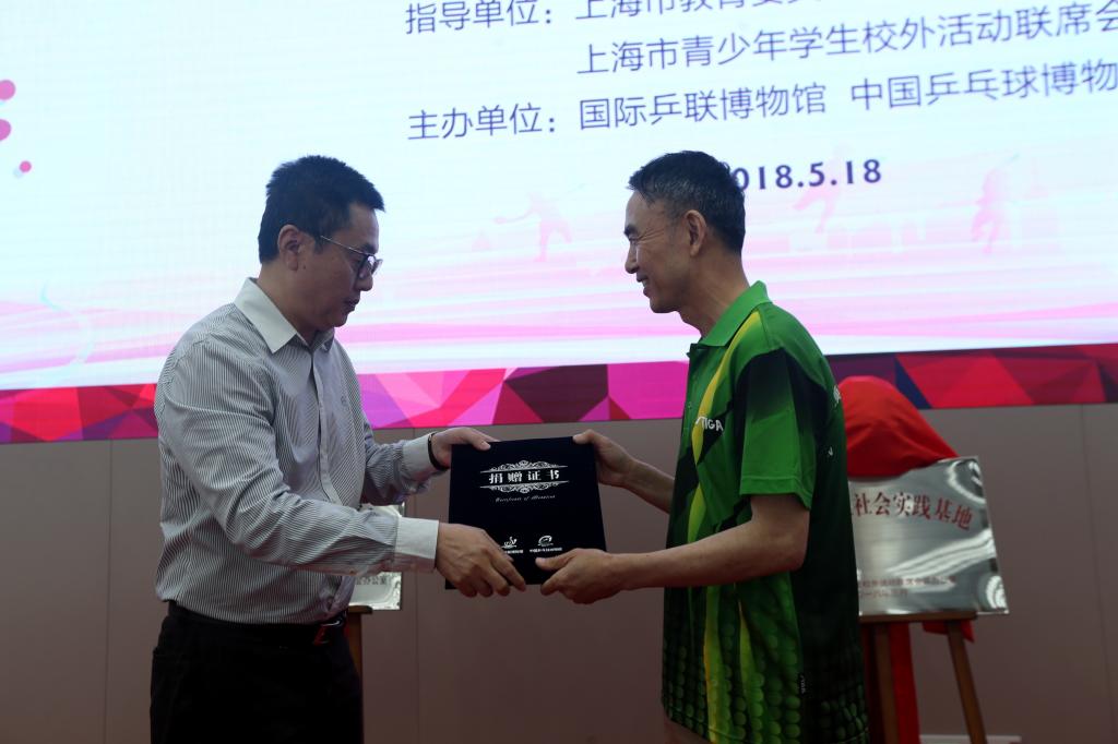 在本次活动中,曾是清华大学乒乓球队运动员的市民袁帆向博物馆捐赠了他珍藏45年的红双喜乒乓球,上海体育学院副院长、乒博馆馆长施之皓为捐赠人颁发了捐赠证书。值得一提的是,中国馆的藏品除一部分来自于国内外优秀乒乓球运动员的捐赠外,更多的则是来自民间的乒乓爱好者、收藏者的无偿捐赠。