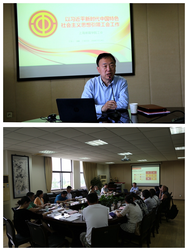 本网讯 5月23日,上海体育学院2018年度工会干部学习培训第三次集中学习会在工会会议室举行,党委副书记、组织部部长、工会主席潘勤为参训专兼职工会干部做了《以习近平新时代中国特色社会主义思想引领工会工作》党课辅导报告。会议由校工会常务副主席刘宏主持,人事处处长、工会福利保障部负责人游林生,工会兼职副主席殷勤、山广,工会经费审查委员会主任刘勇,各部门工会主席、工会办公室成员等参加了此次学习。