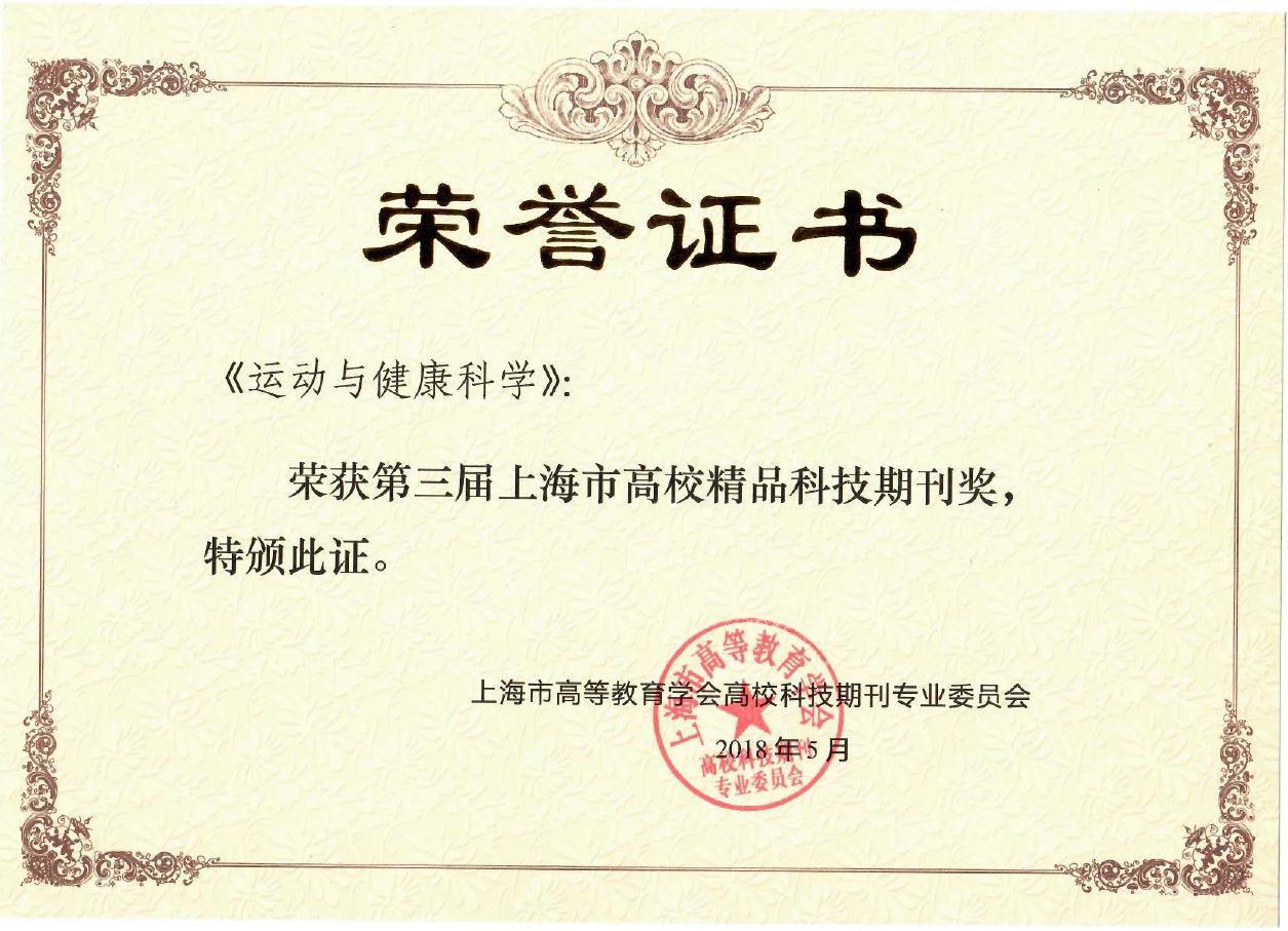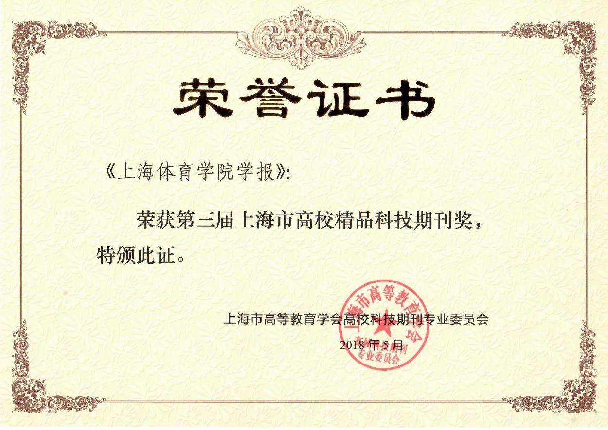 会议公布了第3届上海市高校精品·优秀·特色科技期刊奖获奖名单。我校主办的《运动与健康科学(英文)》和《上海体育学院学报》杂志以优异的学术质量、编辑出版质量和学术影响力,同时获得“上海市高校精品科技期刊奖”;《中国体育教练员》杂志以准确的读者定位、鲜明的办刊风格和独特的报道内容,获得“上海市高校特色科技期刊奖”。这既是对我校主办学术期刊影响力的行业认可,也是对期刊编辑工作的肯定与鼓励,同时有利于促进体育学术期刊服务高校学科建设。