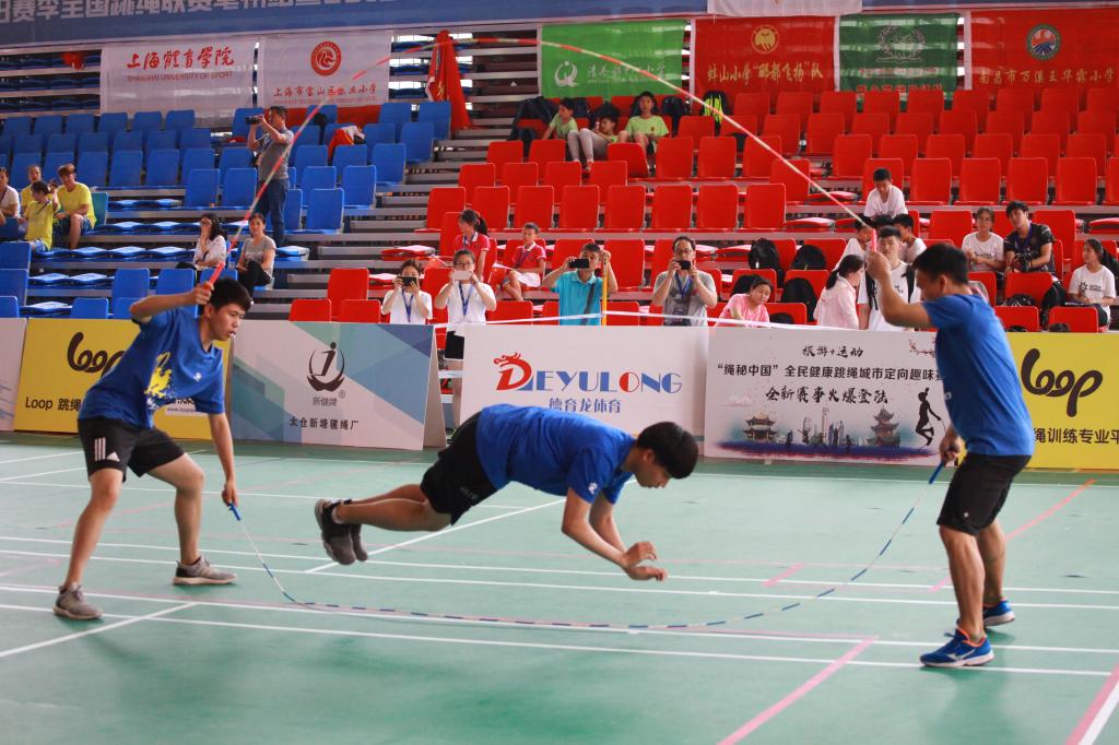 为加强梯队建设,我校派出23名运动员参赛,赛场上队员们不畏强敌、顽强拼搏,圆满完成比赛任务。在个人速度赛中,李时兴同学以30秒188次(6.2次/秒)的急速跳绳拔得头筹;在交互绳速度赛中吴望强同学以30秒197次(6.5次/秒)的“光”速跳绳勇夺桂冠;在个人花样、同步花样、车轮花样、交互花样的比赛中我校队员以高超的难度技巧和极富创意的动作编排博得现场裁判及观众认可,取得金牌。CCTV5体育晨报对我校进行了报道:“这是上海体育学院自主创编的小型自编赛,不仅采用了如今流行的嘻哈音乐,更是将街舞中很多高难度动作与跳绳结合在一起,一套动作下来,全场沸腾了……”