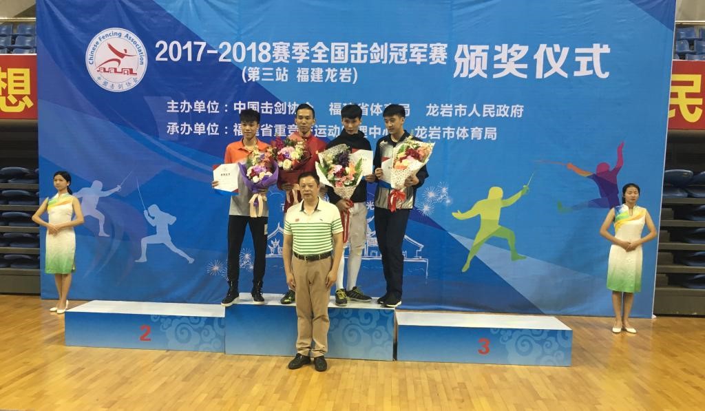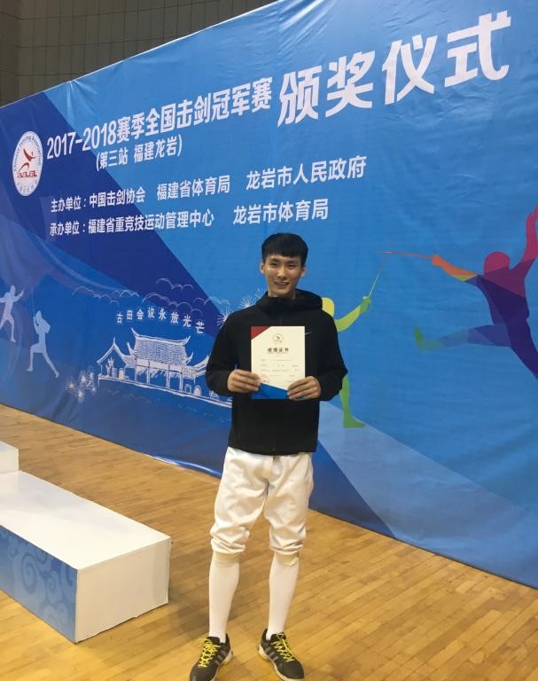 本网讯2017-2018赛季全国击剑冠军赛(第三站)6月2日至11日在龙岩市举行,来自全国34个代表单位的1000余名运动员参加了本次赛事。在刚刚结束的共有167人参加的男子重剑个人赛中,我校学生丁迪迪奋力拼搏,过关斩将,最终夺得第三名,为学校争得了荣誉。生于2000年的丁迪迪是击剑队的新秀,在本次比赛中丁迪迪初生牛犊不怕虎,凭借出色的发挥第一次站上领奖台,这不仅是他个人的突破,也是上海体院击剑项目不断发展的佐证。
