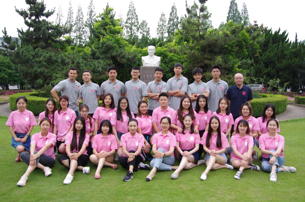 会后,蕴瑞学苑六期学员在恒仁路200号校门处吴蕴瑞雕塑处合影留念。