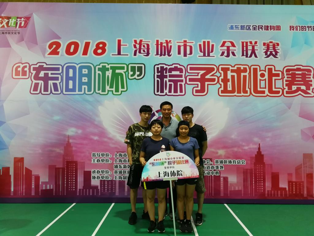 本网讯 6月10日下午13:00,上海城市业余联赛“东明杯”粽子球比赛于浦东三林北校正式拉开帷幕。由体育教育训练学院及经济管理学院学生组成的我校代表队,在金贇老师的带领下,参加了本次粽子球混合团体及个人拍球赛。经过激烈比拼,力夺团体第一和个人前八的好成绩。