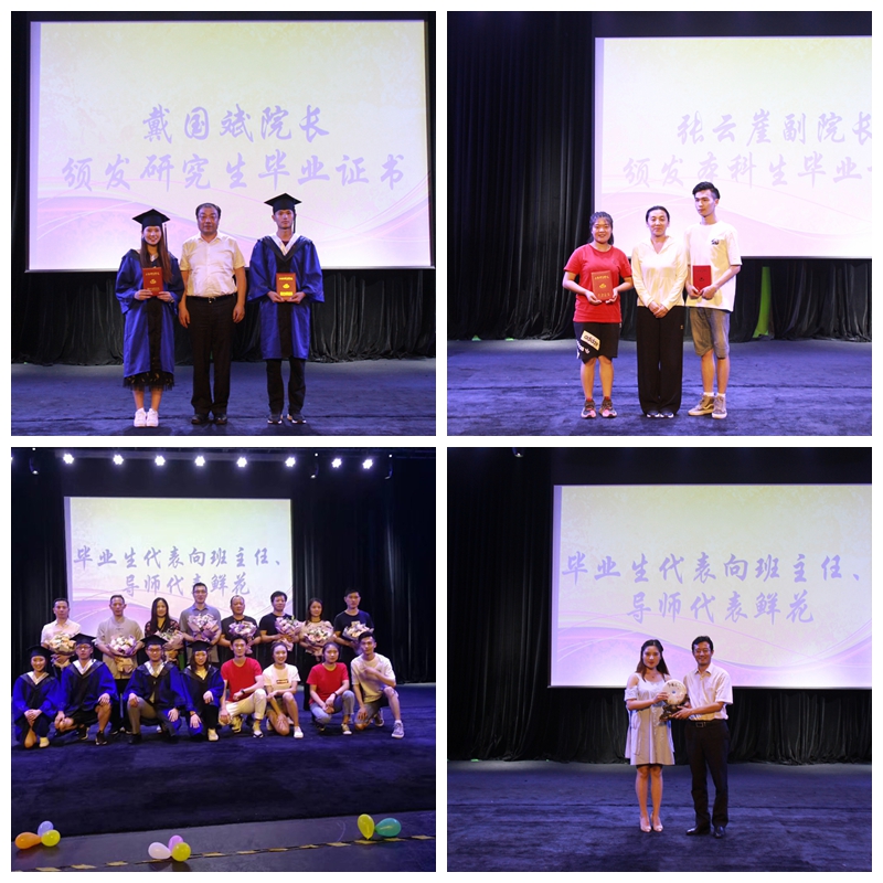 戴国斌、张云崖分别为2018届研究生毕业生代表、本科生毕业生代表颁发毕业证书。
