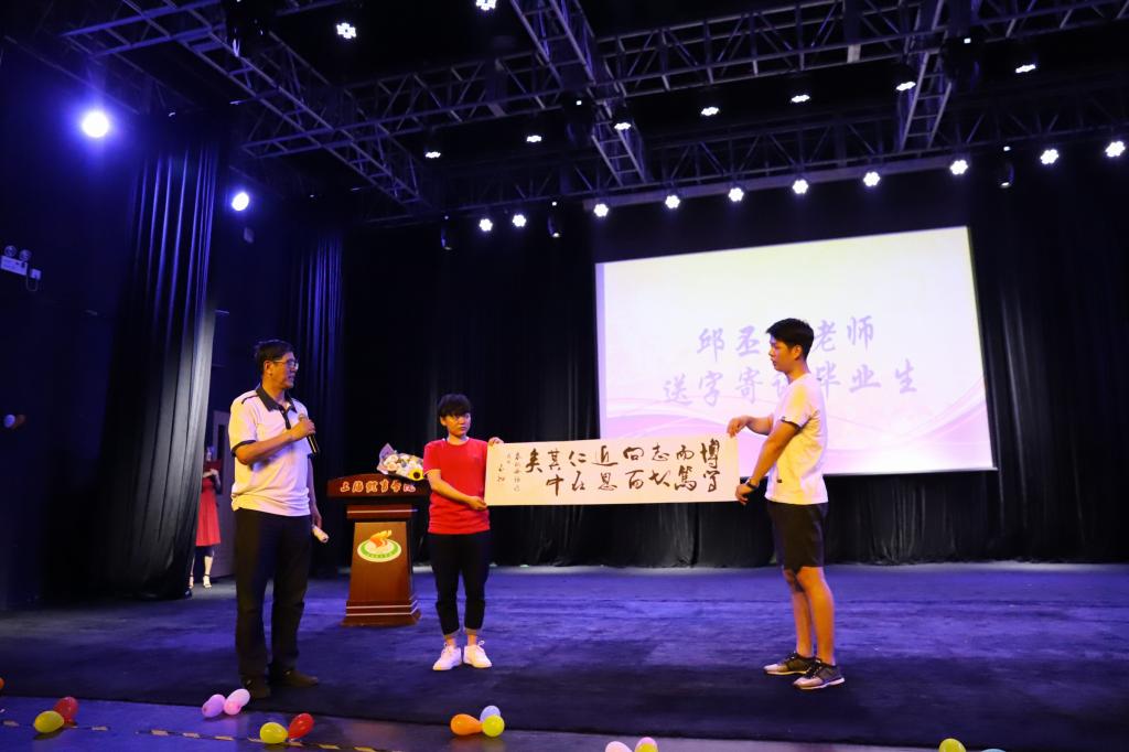 全场师生深情朗诵了武术学院顾问邱丕相教授为2018届毕业生精心准备的书法作品,“博学而笃志,切问而近思,仁在其中矣。”以此希望毕业生走出校门之后,继续博览群书广泛学习,而且能坚守自己的志向,抱着学习的心态面对未来的人生。