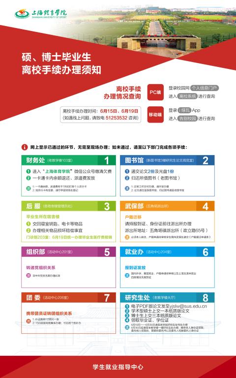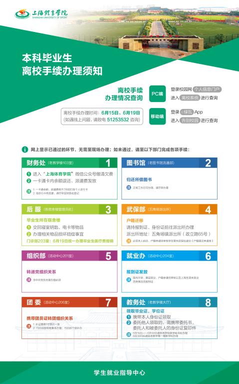 今年,学校为进一步方便学生,在以往线上离校工作的基础上,推出离校手续办理情况查询PC端与移动端,毕业生可登录校园网个人信息门户进入离校系统进行查询或通过手机“i绿瓦”APP进入告别校园进行查询,查询离校手续办理进度。
