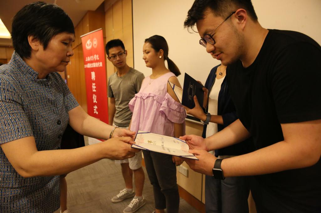对外协作办主任张志洁宣读《上海体育学院关于聘任2018届校友联络代表的决定》并为全体2018届校友联络代表颁发聘任证书。张志洁表示,希望各位校友联络代表在毕业之后能够一如既往地关注母校,积极拓宽母校与校友的联系和沟通渠道,积极为母校的发展建言献策、增砖添瓦。张老师提出三点希望:希望每一位校友联络代表,一要志存高远,脚踏实地,努力追求自己的梦想;二要认真履行校友联络代表职责,配合对外协作办公室、各二级学院校友会做好校友工作,及时将校友中涌现出的先进事迹通报学校;三要身体力行积极宣传母校,及时准确地转达母校取得的成绩。