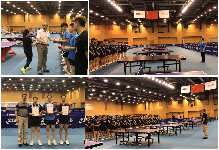 中乒院副院长任杰和教务处竞训科朱昆老师参加了开幕式。本次比赛旨在促进学生对乒乓球项目的深度认知,培养学生乒乓球兴趣,同时为下半年的上海市运动会选拔优秀运动员代表我校参赛。经过一天激烈的比赛,最后本次比赛的裁判长徐文婷老师分别宣布荣获甲组男、女研究生和本科生冠军以及乙组男、女本科生冠军。他们分别是:甲组17级葛文超、17级陈爽、16级黄煌、16级钟雨珂;乙组17级董阳阳、16级顾翎铃。