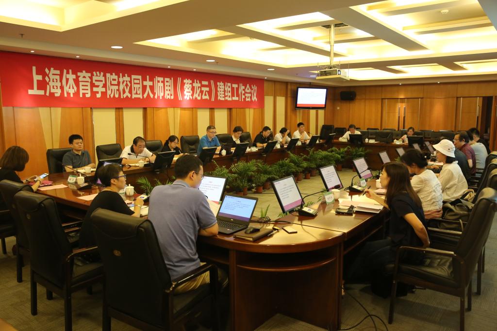 本网讯 7月2日上午,校园大师剧《蔡龙云》建组工作会议在学校召开。学校党委书记李崟,党委副书记、纪委书记詹萌出席会议。剧本创作者、上海戏剧学院二级教授陆军及其创作团队,国家一级导演、“上海三部曲”导演徐俊及其团队、蔡龙云先生家属代表蔡纲等应邀参会。党委宣传部、教务处、团委,艺术类专业所在的武术学院、新外学院和休艺学院负责人,部分艺术类专业教学团队负责任人,以及蔡龙云大师工作室工作人员参加了建组会。会议由詹萌主持。