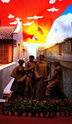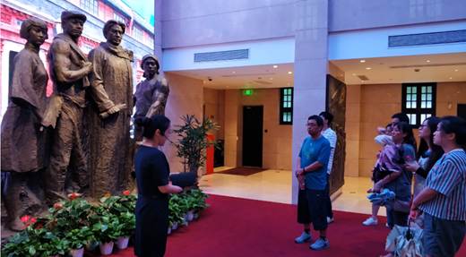 展区由“序厅、中共二大展厅、中共二大会议旧址、党章历程厅、平民女校旧址展厅”五个展区组成。展厅运用现代化的展览技术,真实地还原历史,生动地为我们参观者讲述了历史。序厅里庄重大气,主题雕塑让我们深刻体会到,在中国共产党反帝反封建的民主革命纲领大旗的指引下,中国大地上的工人、农民、青年、妇女运动蓬勃发展。