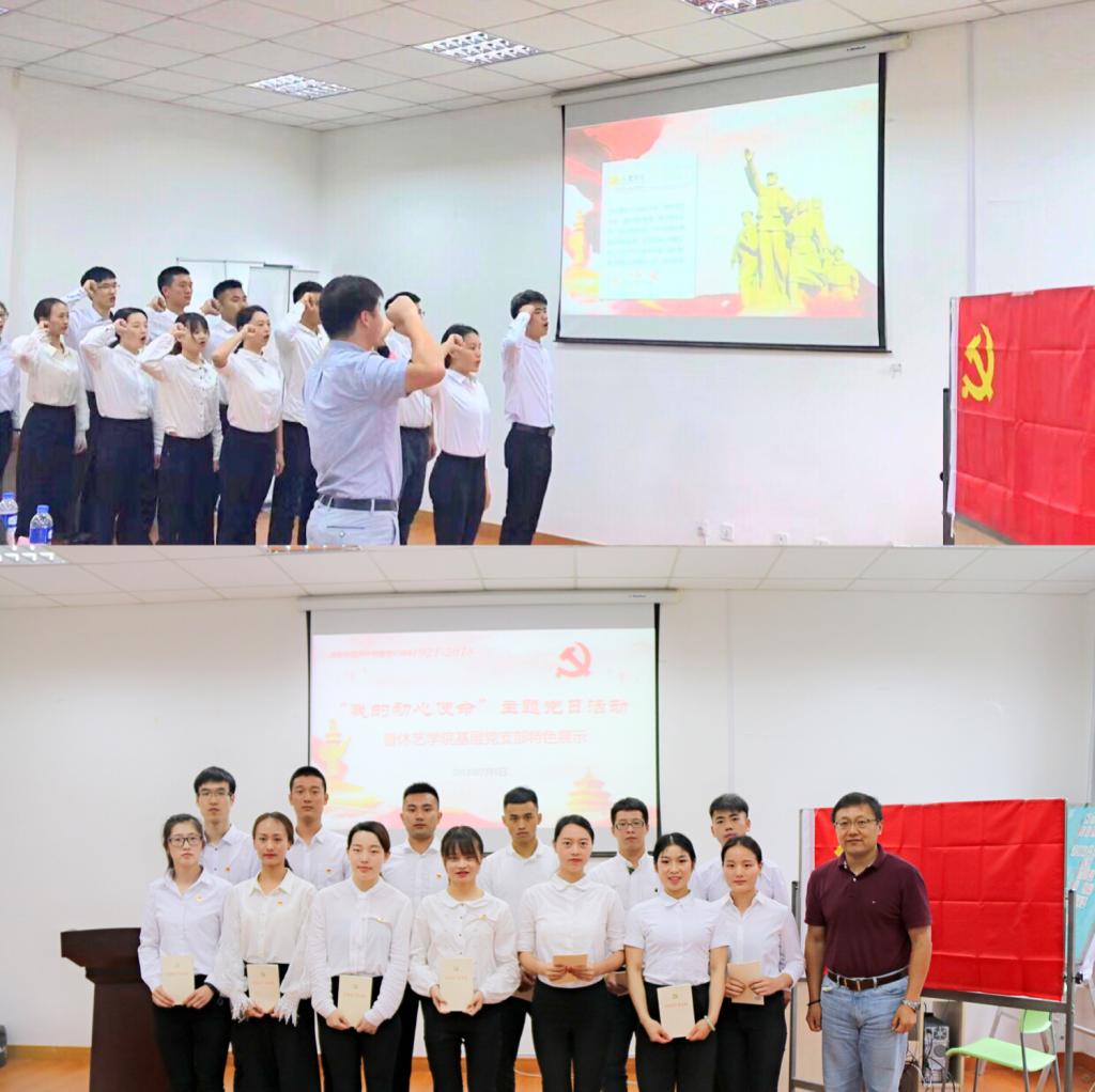 活动中本科生党支部书记李文阁带领本学期新发展的13名党员进行了庄严的宣誓仪式。李海为各位新党员颁发党章、党徽。