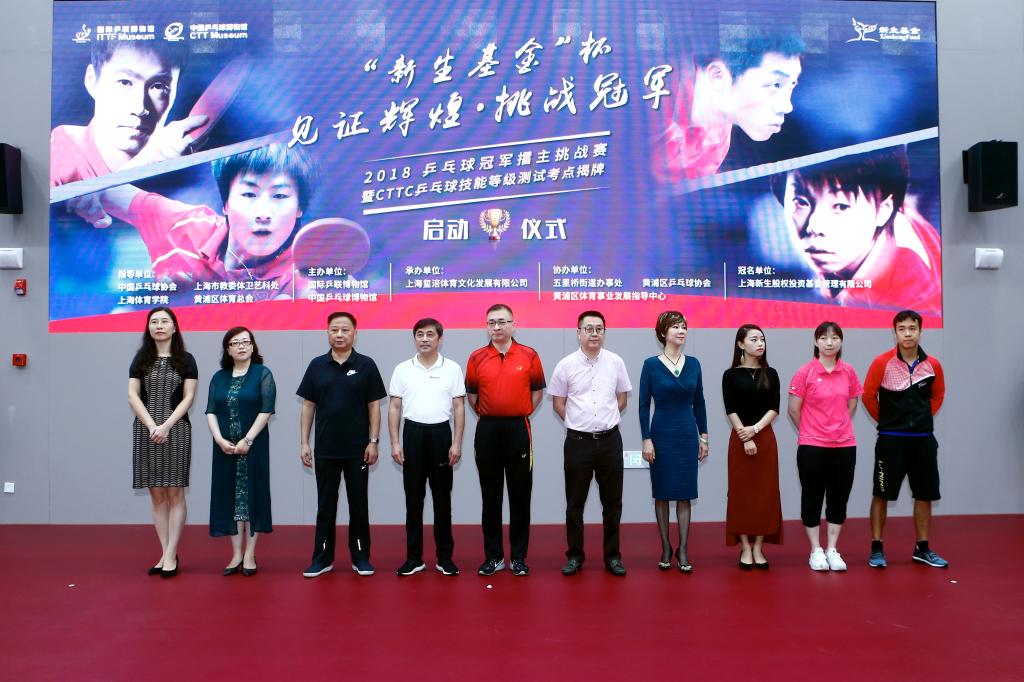 新生基金杯“见证辉煌·挑战冠军”2018乒乓球冠军擂主挑战赛由中国乒乓球协会、上海体育学院、上海市教委体卫艺科处、黄浦区体育总会指导,国际乒联博物馆中国乒乓球博物馆主办,上海玺涪体育文化发展有限公司承办,五里桥街道办事处、黄浦区体育事业发展指导中心、黄浦区乒乓球协会协办,上海新生股权投资基金管理有限公司冠名。