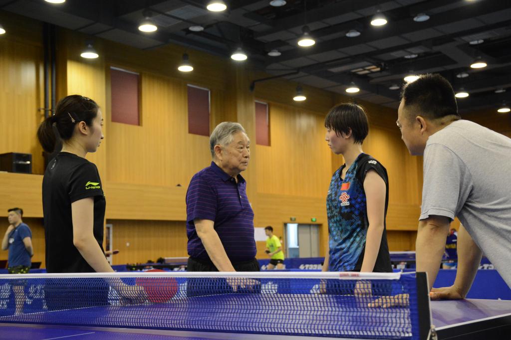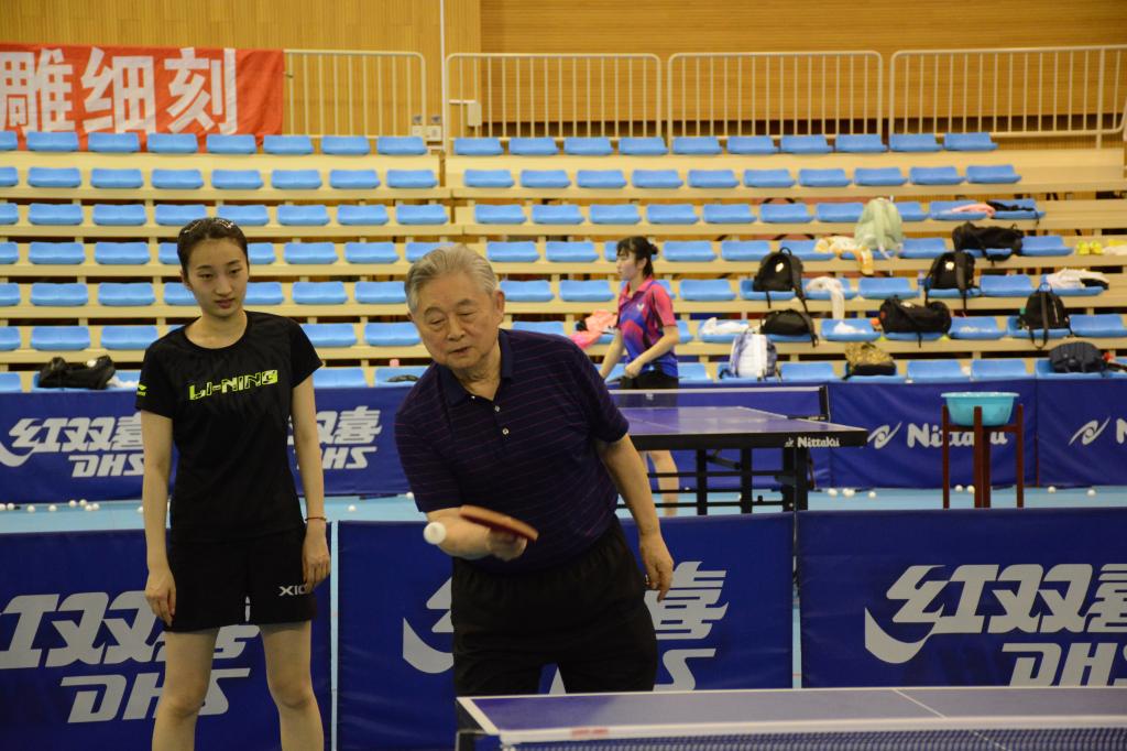 7月10日下午,原国家体委副主任、国际乒联主席和中国乒协主席,现中国乒乓球学院名誉院长徐寅生受国家体育总局乒羽中心邀请,来到中乒院训练馆为国家二队运动员进行训练指导和赛前鼓励,上海体育学院党委书记李崟也来到中乒院训练馆观看训练并与徐寅生亲切交谈。
