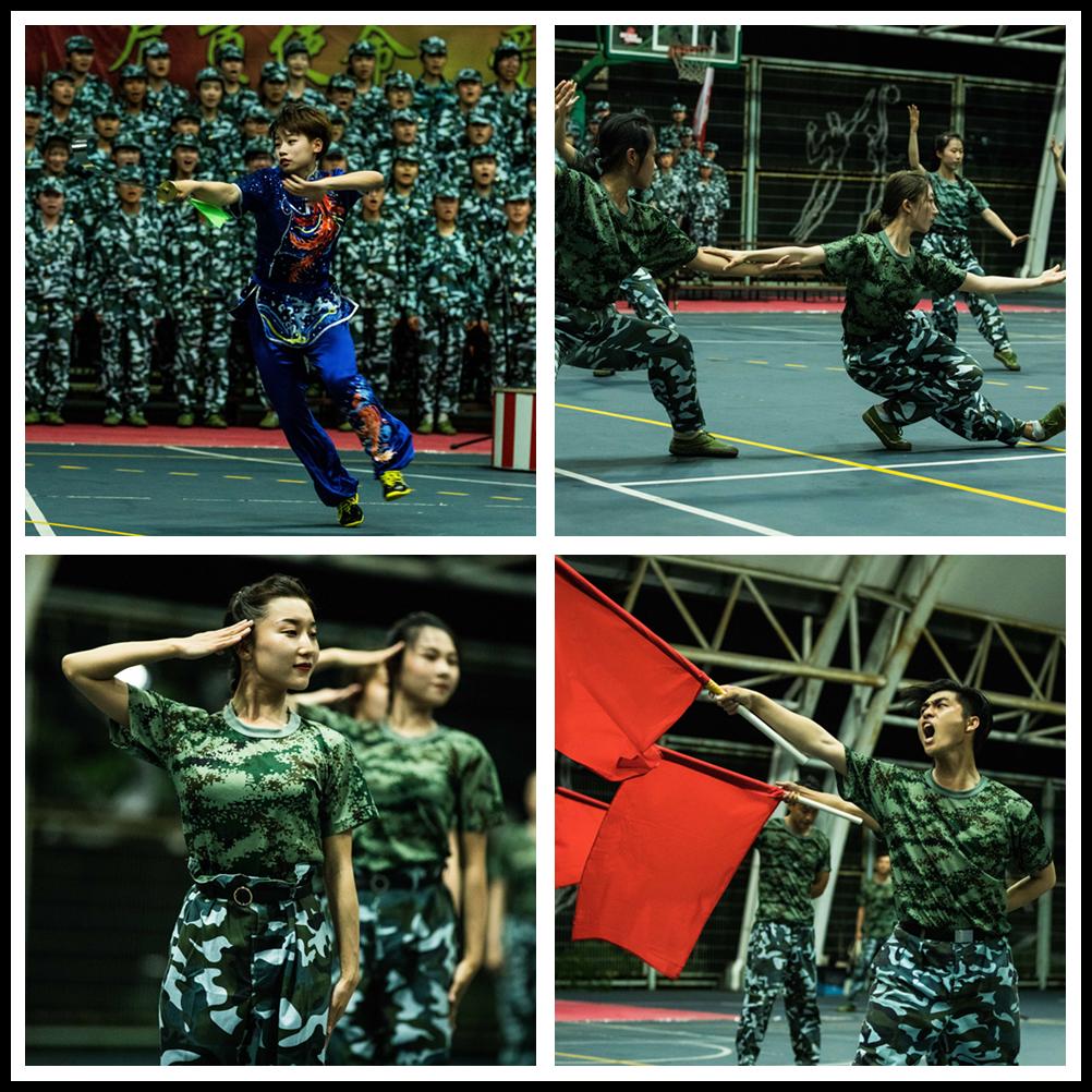 各连队表演结束后,教官们表演的《假如战争今天爆发》将红歌会推向了高潮。平日里教官给大家的印象都是严肃严厉的,但今天大家看到了教官除了“稍息、立正”,也能唱出嘹亮的歌声。