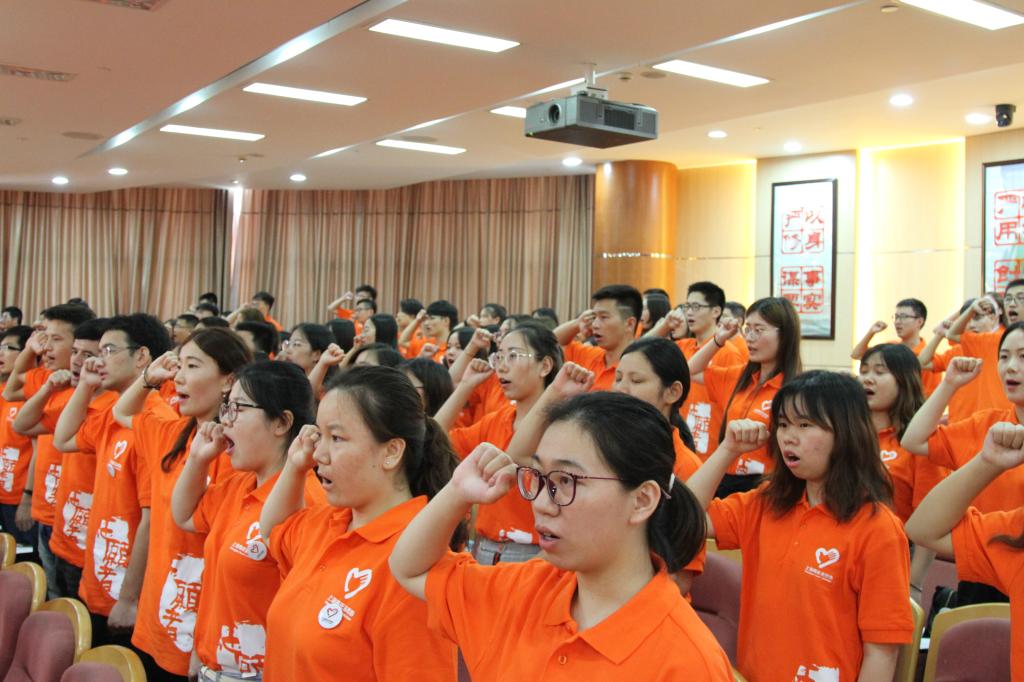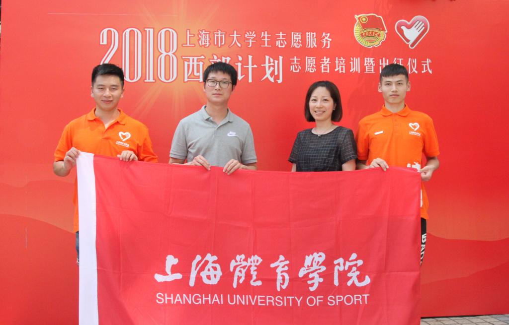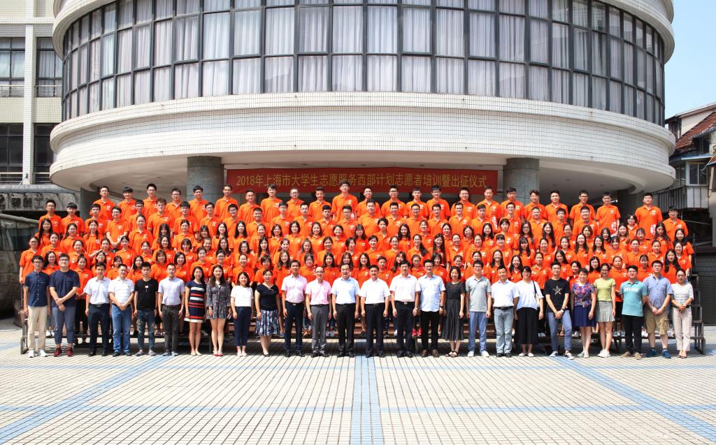 本网讯 7月20日下午,2018年上海市大学生志愿服务西部计划志愿者出征仪式在上海青年管理干部学院举行。团市委副书记邬斌出席仪式为志愿者授旗并讲话。我校团委书记、学工部副部长梅朵,团委副书记陈鸿及两名大学生志愿服务西部计划志愿者参加仪式。