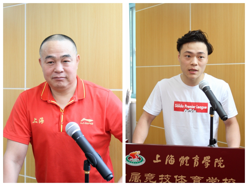 教练员代表男子拳击队主教练潘峰及运动员代表男子散打队运动员潘乐杰分别进行了交流发言。潘峰教练在发言中回顾了男子拳击队人才培养及上半年的竞赛情况,最后潘峰表示将一如既往,奋力拼搏,不忘初心,迎难而上,向着奥运冠军梦一路前进。年仅18岁的潘乐杰在今年的全国锦标赛和冠军赛中表现突出,他在发言中感谢学校对他的关心和培养,作为竞校新生代运动员的代表他将把握好手中的接力棒,用努力回报学校及师长们的信任,用拼搏换取更辉煌的明天。