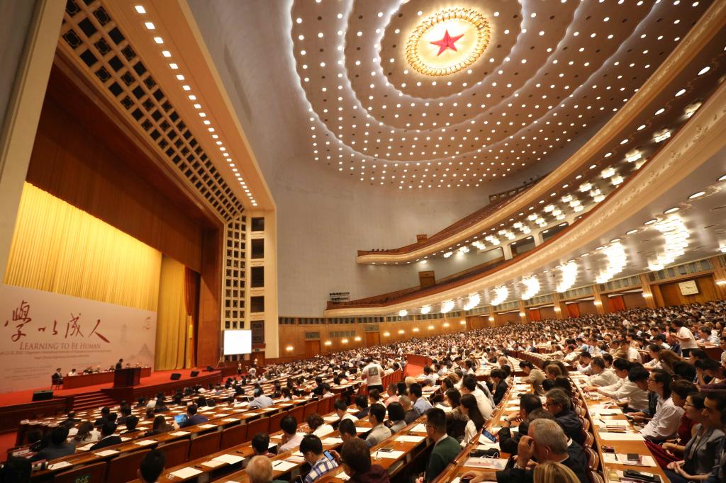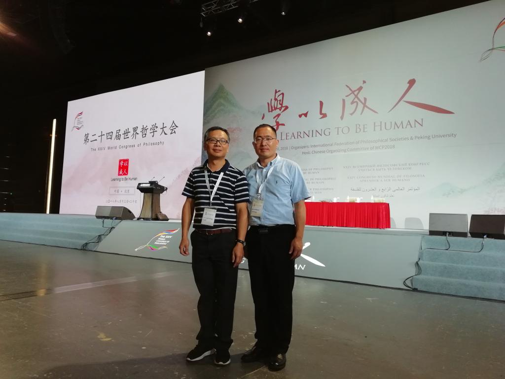 本网讯 8月13-20日,第二十四届世界哲学大会在北京举行。此次大会由国际哲学团体联合会和北京大学共同主办,来自全球七千多名学者参加了此次盛会。本次大会以Learning to Be Human(“学以成人”)为主题,围绕“精神、仁爱、自我、社群”等议题进行深入讨论。8月13日上午,在人民大会堂举行了第24届世界哲学大会开幕式,教育部部长陈宝生出席会议并发表重要讲话。北京市委教育工委书记林克庆,国际哲学团体联合会(FISP)主席Dermot Moran教授、秘书长Luca M. Scarantino教授,北京大学党委书记郝平、校长林建华等嘉宾出席开幕式,开幕式由北京大学副校长王博主持。我校博士生导师龚正伟教授及博士研究生徐正旭参加会议并就体育哲学做交流研讨。