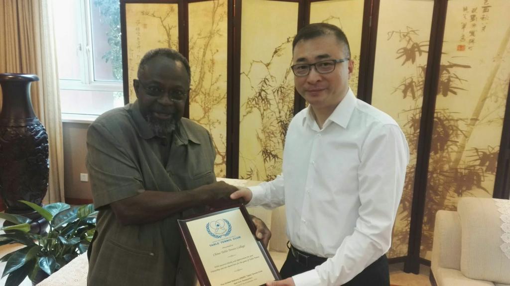 联合国乒乓球俱乐部主席黄武耀、联合国乒乓球俱乐部副主席帕帕·佛(Papa Fall)等联合国乒乓球俱乐部成员一行参观中国乒乓球学院并与中乒院青少年运动员进行了交流。