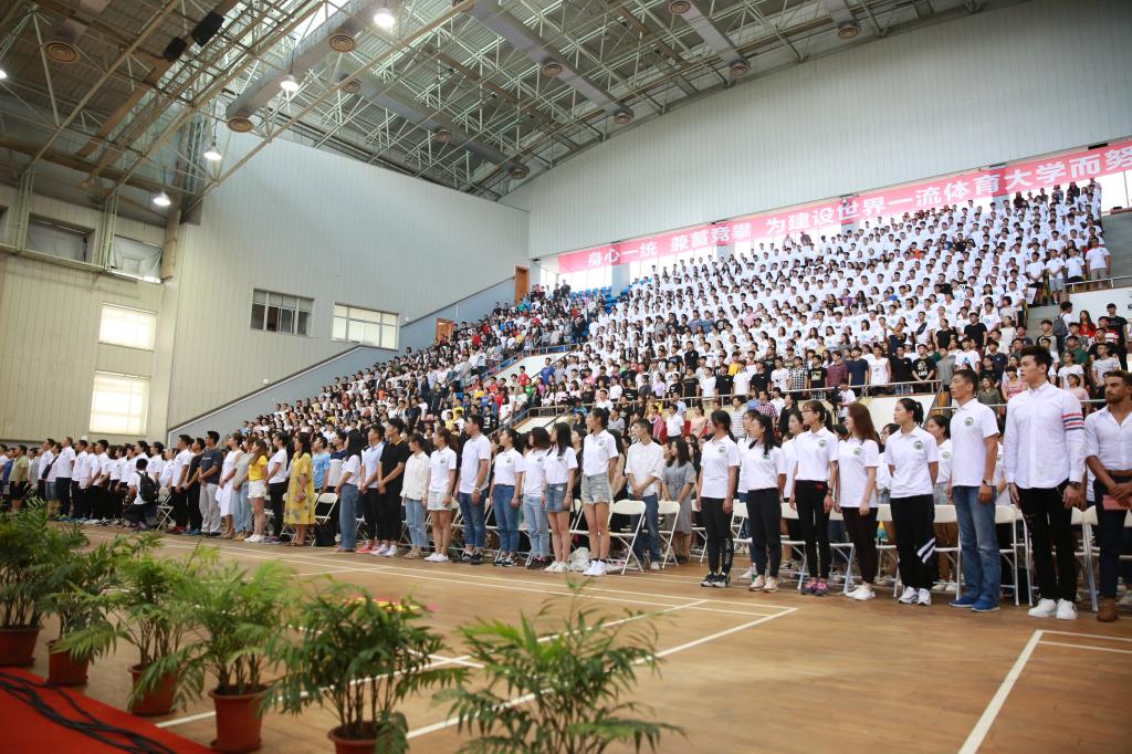 开学典礼在上海体育学院校歌声中顺利结束。