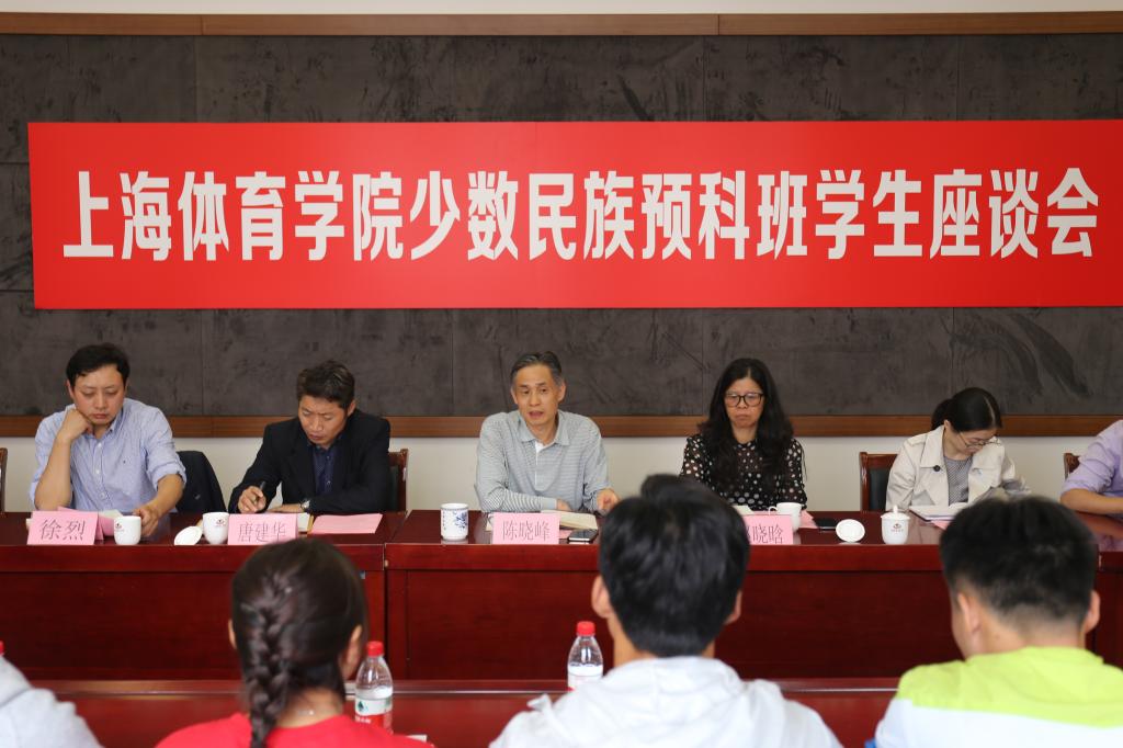 本网讯 为进一步关心了解少数民族预科班学生在学校的学习生活,切实提高少数民族学生对学校的归属感和荣誉感,10月12日在学生活动中心二楼会议室,学校举行了少数民族预科班学生座谈会。学院党委副书记、副院长陈晓峰,统战部、学工部、团委、体育教育训练学院等单位负责人,预科班辅导员与15位2018级少数民族预科班学生共同参加此次座谈会。会议由体育教育训练学院党总支副书记、副院长徐烈主持。