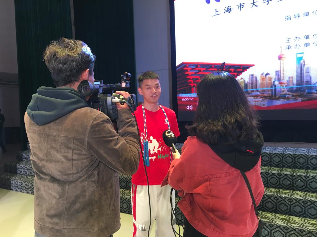 我校学生、花样跳绳队队员李高杰作为上海大学生文化志愿者代表接受庆阳电视台采访。