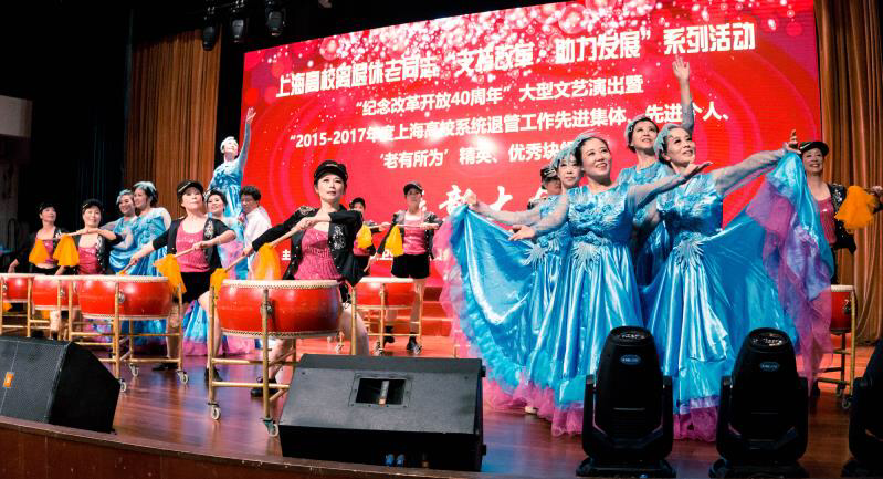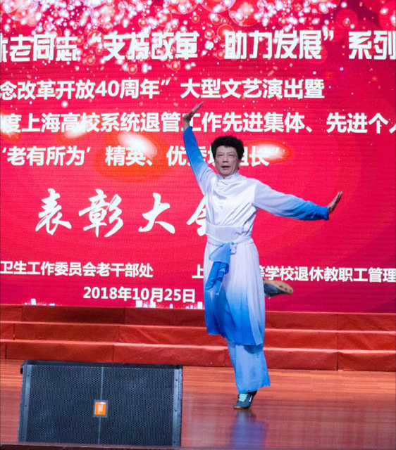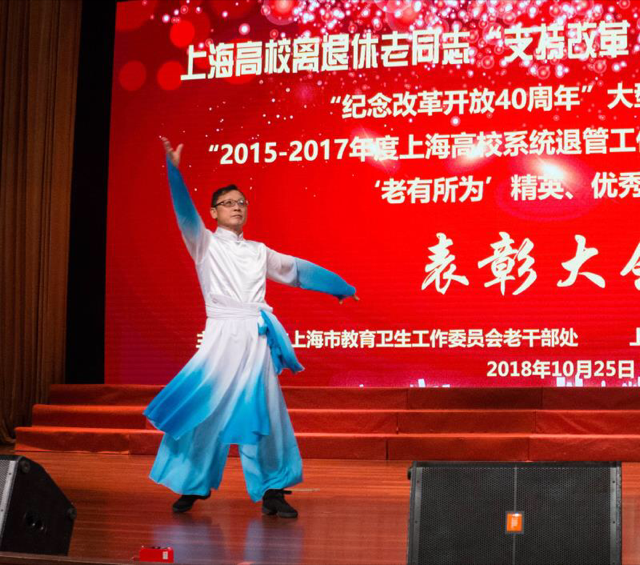 演出之前,举行了对2015-2017年先进集体和个人的表彰大会。我院退管干部吕金东荣获上海市高校系统先进退管工作者称号,黄顺章、李双喜老师分别荣获“老有所为”精英奖和优秀块组长称号。
