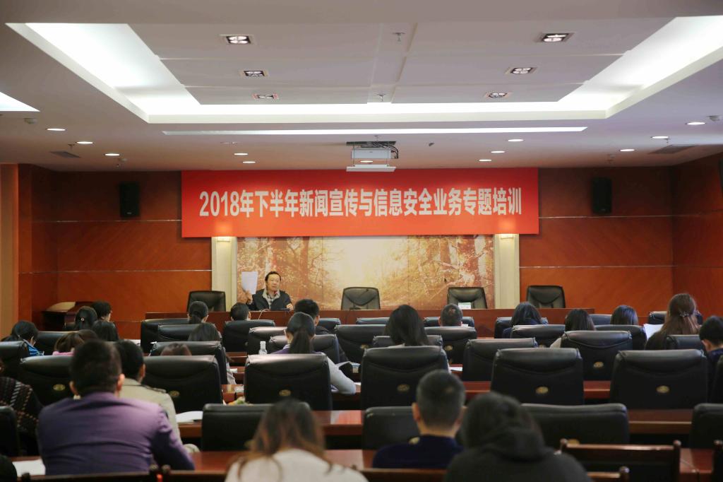 本网讯 时值进博会开幕前夕,11月1日上午,我校在图文信息楼第二会议室进行了2018年下半年新闻宣传与信息安全业务专题培训,此次培训由党委宣传部和信息中心联合主办。党委副书记、纪委书记詹萌出席培训并对学校网络内容建设及信息安全提出了要求。各二级学院党总支书记参加了培训动员会。来自全校各职能部处、二级系院的网站管理员、新闻宣传员60余人参加了培训。