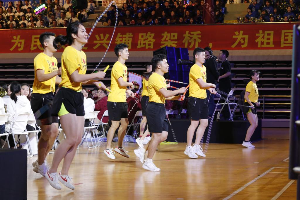 我校花样跳绳队结合体育特色,发挥学院优势,多次登上国际、国内舞台,更承担过奥运演出任务,一根细细的跳绳不仅展现了我校青年的健康风貌,更展现了我校改革开放40年以来,不断超越自我凝聚力量,突破创新的竞攀精神。