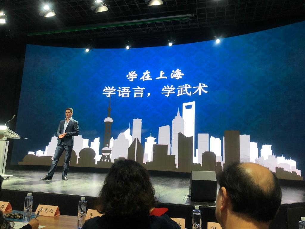 本网讯 11月20日,上海高校国际学生庆祝改革开放40周年演讲比赛“My impression, My Shanghai上海印象”在复旦大学隆重举行,16位参赛选手分别来自复旦大学、交通大学、华东师范大学、上海大学、上海中医药大学等各大高校。我校武术表演专业的意大利留学生阿来代表上海体育学院参加了此次演讲比赛,荣获三等奖。国际教育学院留学生代表以亲友团的身份前往观看,为他加油助威。