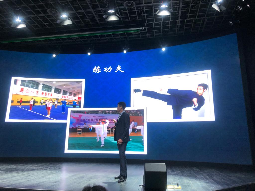我院留学生阿来,赛前精心准备,从撰写文稿到脱稿背诵,从跟随辅导老师纠音到演讲时武术动作的设计,从参加彩排到熟悉场地,他都一丝不苟,精益求精。阿来讲述自幼如何对中国文化、中国武术产生兴趣的原因,利用PPT展示上海体院的武术文化,并通过自己的肢体动作加强内容的表达,他语言幽默风趣,内容真实感人,展现了体育学院的特色,赢得了评委的赞扬。