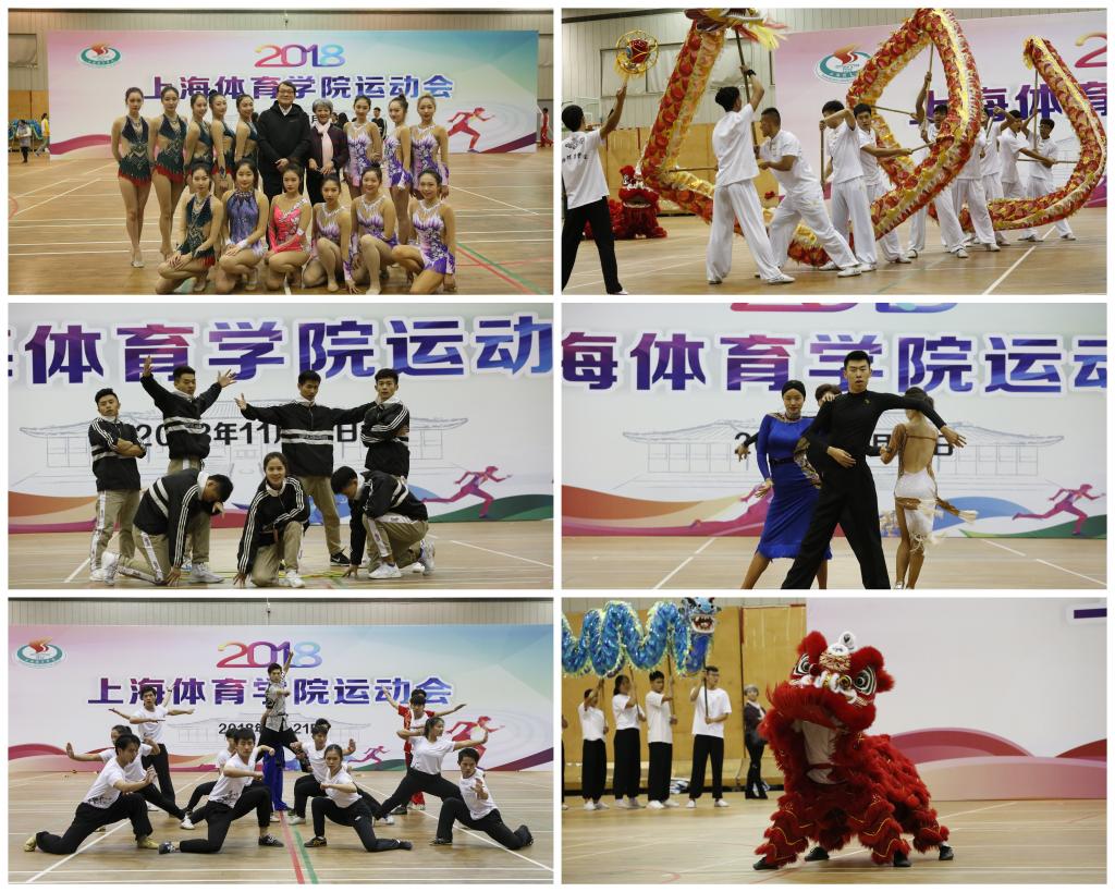 在此之后,2018年上海体育学院运动会开幕式表演正式拉开帷幕,开幕式表演由武术学院武术套路院队的《武向辉煌》、龙狮院队的《龙腾狮跃》、体育教育训练学院艺术体操院队的《体育之美》和体育休闲与艺术学院跳绳院队的《绳舞飞扬》、体育舞蹈院队的《燃舞青春》五个精彩节目组成。节目内容紧凑而精彩,充分展示我校体育健儿的精湛技艺,和良好的精神面貌。参演节目赢得了在场观众热烈的掌声。