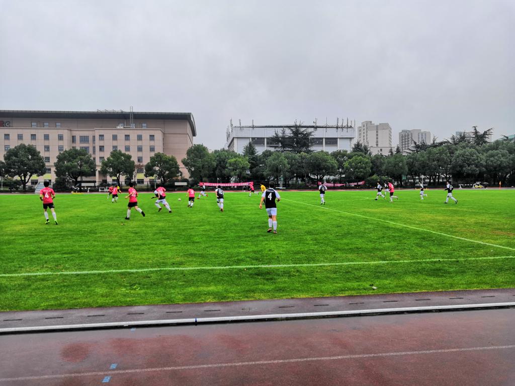 足球决赛在东田径场拉开战幕,天空虽然下着雨,经过激烈角逐,2016级体育教育专业足球专项班获得冠军,体育教育训练学院研究生一队、体育新闻传播与外语学院分获二、三名。比赛结束后,由体育教育训练学院党总支书记赵晓含、体育教育训练学院副院长杨烨、教务处副处长山广分别为前三名队伍颁奖。
