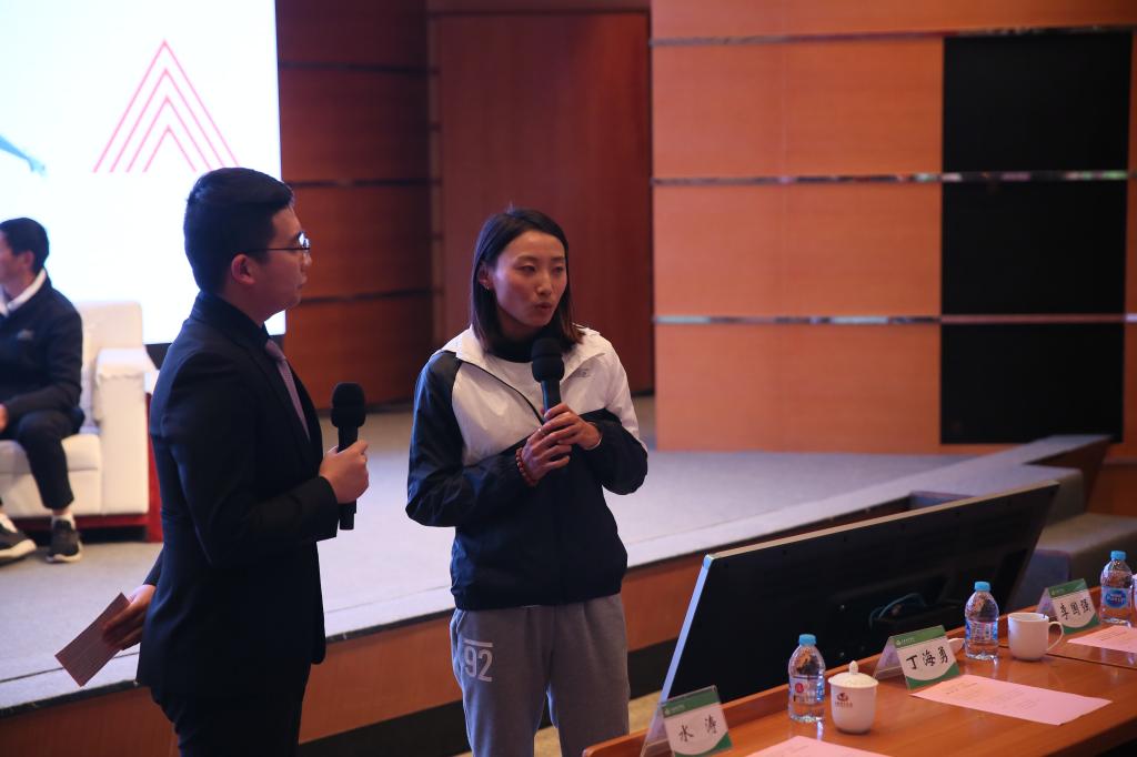 主题交流的最后一个环节,上体田径长跑队员、2018年上马女子国内组第一名李芷萱等同学与现场观众进行了交流互动,分享作为青年学子的感受。同时,在场的绿瓦学子,也是马拉松运动从一点一滴不断在国内发展开展的见证者,在不断学习、了解甚至参与马拉松赛事重的收获以及通过马拉松来认识中国体育事业发展的正确方式。