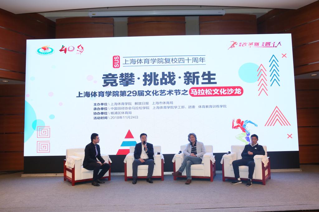 2018年恰逢改革开放40周年,体育领域改革发展也进入一个新的阶段,马拉松运动也正在抓住契机,打造出一系列有中国特色的国际马拉松赛事品牌。今年3月成立的中国田径协会马拉松学院的目标正是建设成为我国培养优秀体育人才特别是马拉松人才的重要基地。本次沙龙对于科学的构建马拉松产业及提高马拉松赛事的影响力和产业,明确马拉松发展与我国改革开放发展的联系和马拉松产业的日益发展在体育改革进程中的作用的重要意义,也促进马拉松文化的在社会中的普及。本次由上海体育学院、解放日报社、上海市体育局主办,中国田径协会马拉松学院、上体学工部、团委、体育教育训练学院承办以及杨浦区体育局协办的“体育改革路,体育四十人”主题活动暨上体文化艺术节之马拉松文化嘉年华活动,聚焦马拉松文化,通过沙龙、主题跑、文化展、嘉年华活动、体育体验等活动,普及马拉松,也是纪念上体复校四十周年的主题活动。