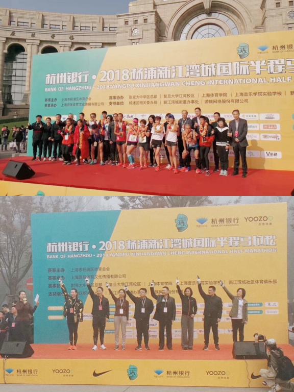 11月25日上午7点整,由我校学生组成的“绿瓦青年”跑团在“2018年杨浦新江湾城国际半程马拉松”赛道上准时开跑,本次我校“庆祝复校四十周年”主题跑是由杨浦区体育局、上海体育学院、中国田径协会马拉松学院倾力打造的一项主题活动,并为每一位参赛选手配备了整套的参赛装备。我校党委副书记、副院长陈晓峰出席活动并为半程马拉松获奖选手颁发奖杯和奖牌,副院长毛丽娟出席起跑仪式并鸣枪发令。我校共有100名左右绿瓦学子参与到马拉松跑步中,本次活动也邀请到了上体田径明星李芷萱、郑芝玲、李美珍、庞帅等领跑,带来专业的奔跑体验。李芷萱以1小时12分20秒的成绩获得女子组半程马拉松冠军,李美珍获季军;庞帅以1小时09分26秒获男子组半程马拉松亚军。